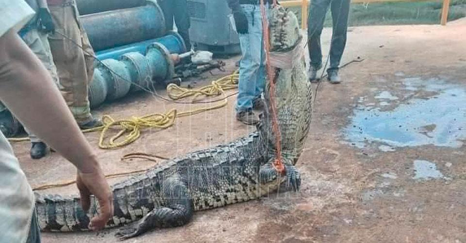 Un enorme cocodrilo fue rescatado del acueducto Guadalupe Victoria