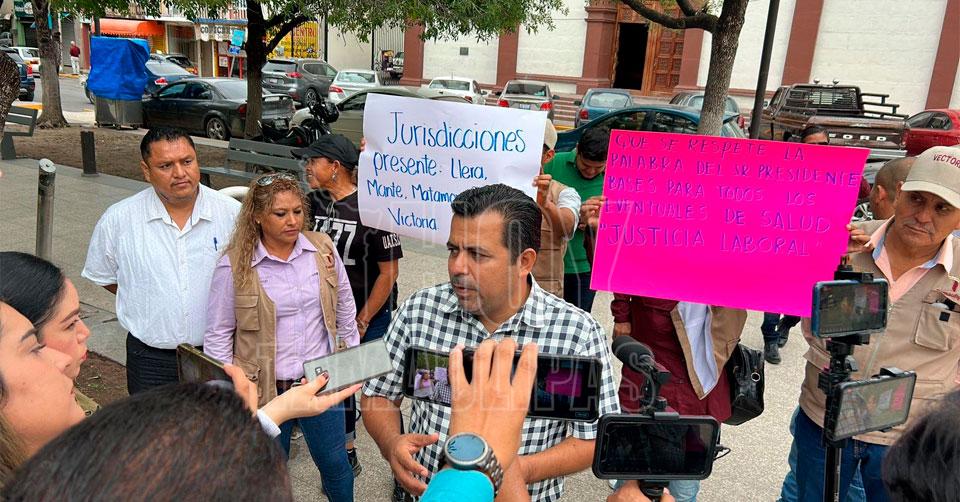 Se plantan en Palacio de Gobierno trabajadores eventuales de Salud en Tamaulipas