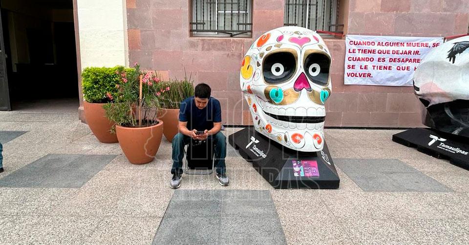 Familiar de desaparecido se postra en Palacio de Gobierno; pide audiencia con el gobernador Américo Villarreal