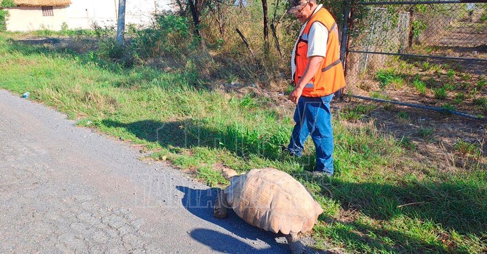 “Como Juan por su casa” Enorme tortuga caminaba por un libramiento de Ciudad Victoria