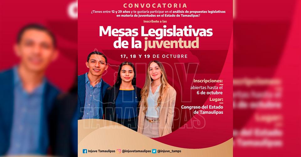 Lanza Injuve Tamaulipas convocatoria “Mesas Legislativas de la Juventud”