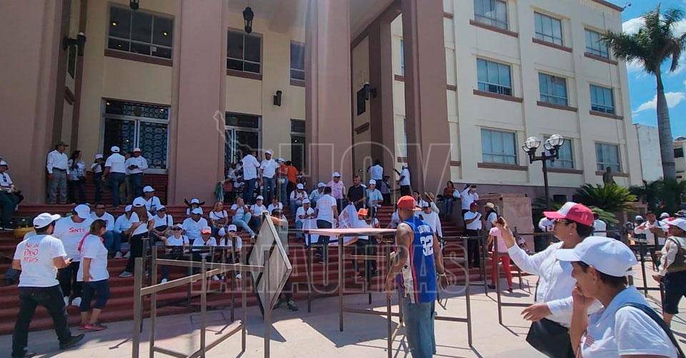 Se brincan las trancas los profes de Tamaulipas en paro, en Palacio de Gobierno
