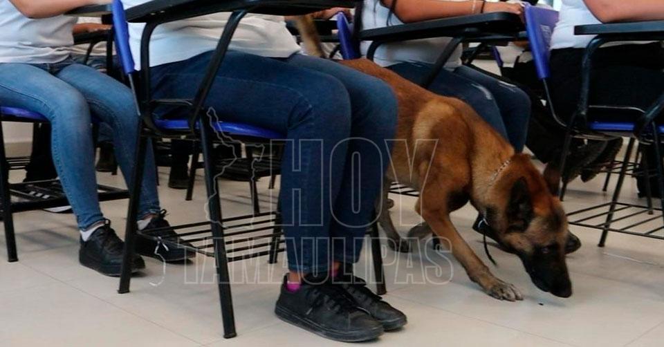 Binomios caninos realizan inspecciones en centros escolares de Tamaulipas