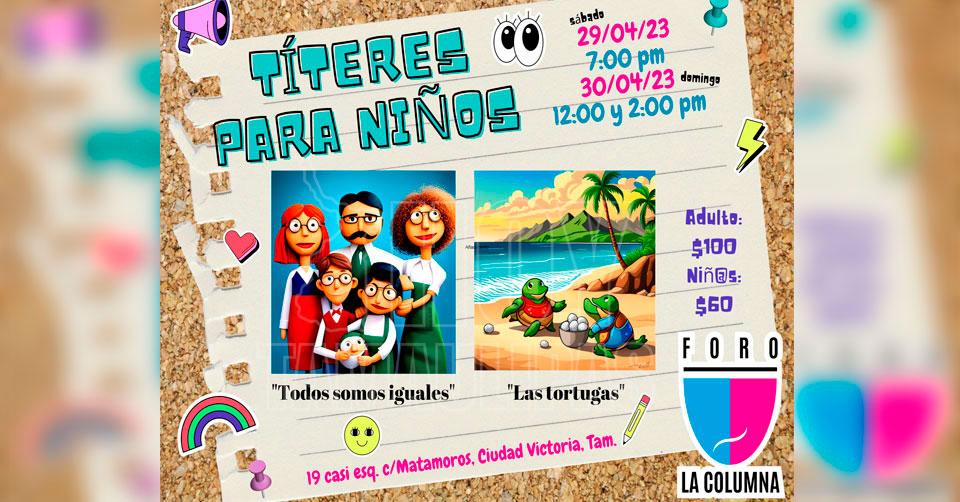 Ven a celebrar el día de la niñez con títeres en el Foro La Columna en Victoria