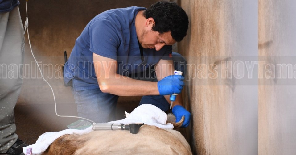 Brindan atención médica urgente para “Chimi”, la leona blanca del Tamatán