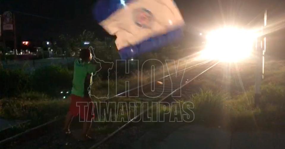 Aficionado del Cruz Azul se le atraviesa al tren para festejar en Ciudad Victoria