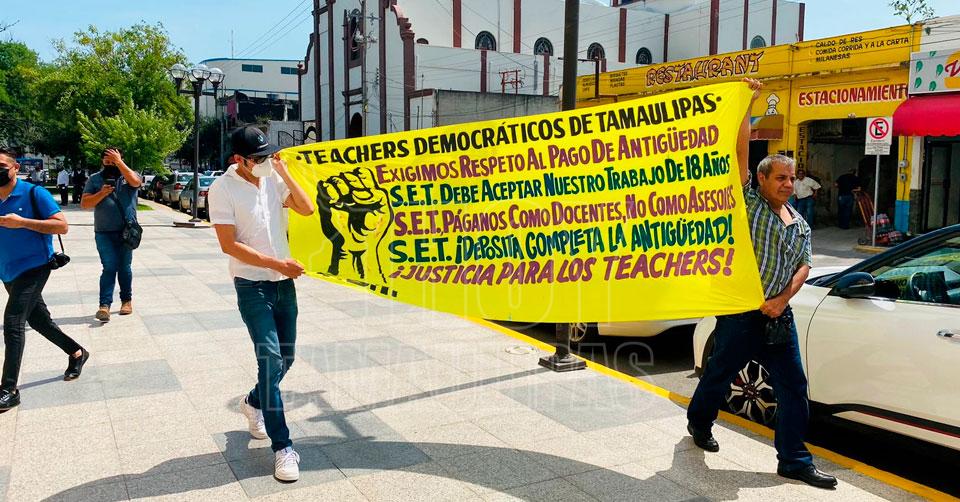 Protestan teachers para exigir les reconozcan antigüedad en Tamaulipas