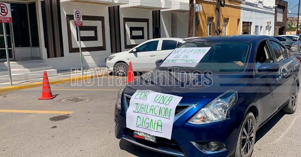 Protestan maestros jubilados por UMA en Ciudad Victoria con caravana vehicular