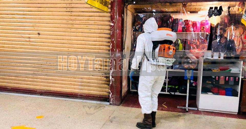 Jóvenes de MC sanitizan el Mercado Argüelles en Ciudad Victoria