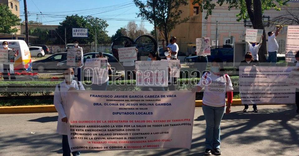 Protestan químicos de Tamaulipas para demandar la recategorización de puestos