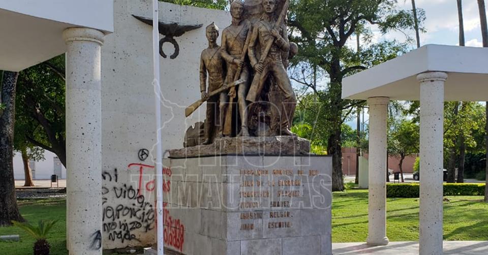 Feministas vandalizan monumento a los Niños Héroes en Ciudad Victoria