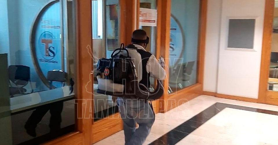 Sanitizan edifico de la Sección 30 del SNTE en Tamaulipas
