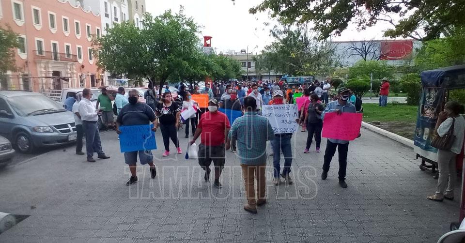Marchan comerciantes de Ciudad Victoria para exigir apoyo prometido por contingencia