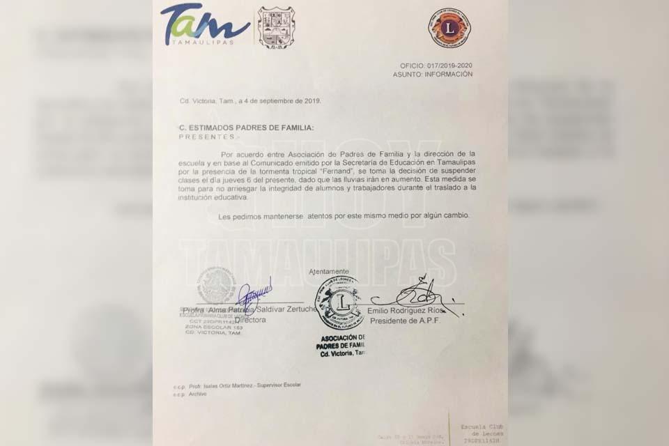 Aunque ya no llueva, el jueves no hay clases en escuelas de Tamaulipas
