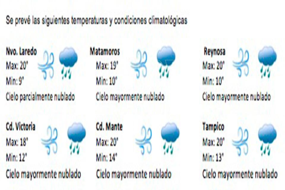 Tendrá Tamaulipas temperaturas bajas durante fin de semana