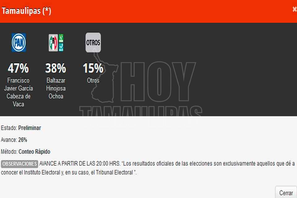 Da PREP triunfos al PAN en alcaldías de Tamaulipas