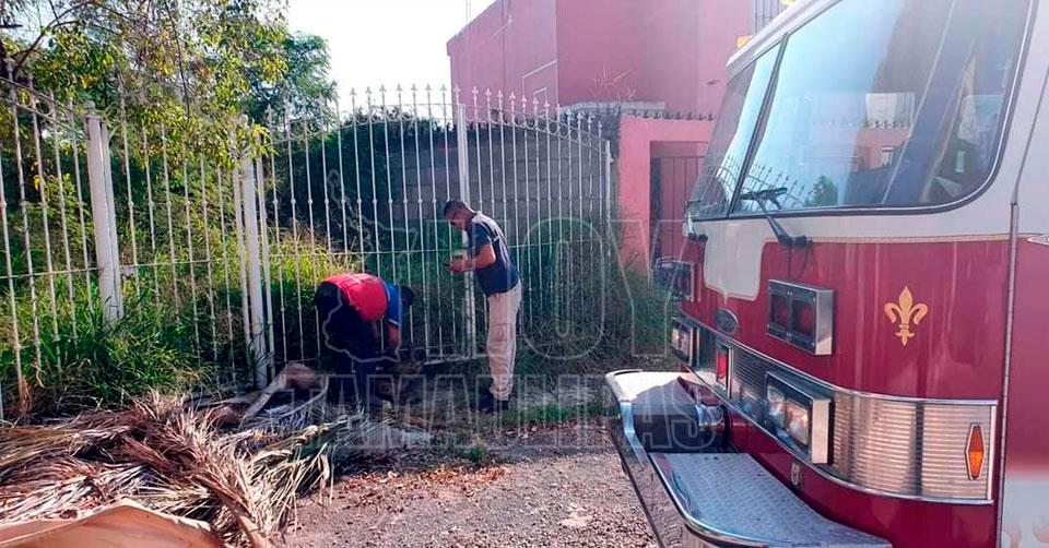 Liberan bomberos de Ciudad Victoria a perro atorado en portón
