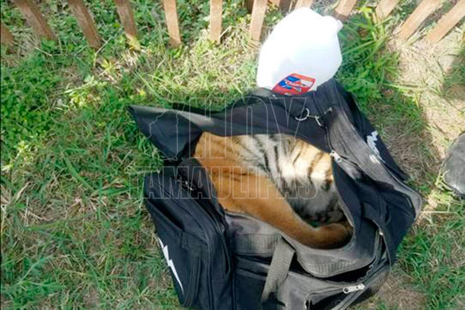 Aseguran cachorro de tigre en una bolsa negra en Texas
