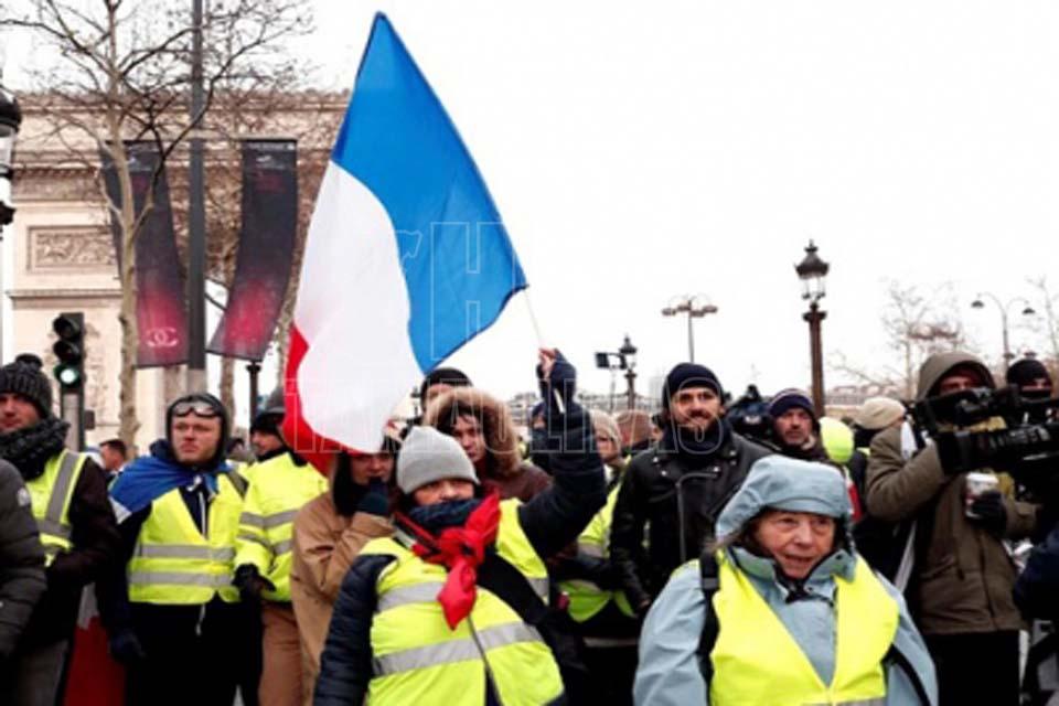 "Chalecos amarillos" y sindicalistas marchan juntos en Francia