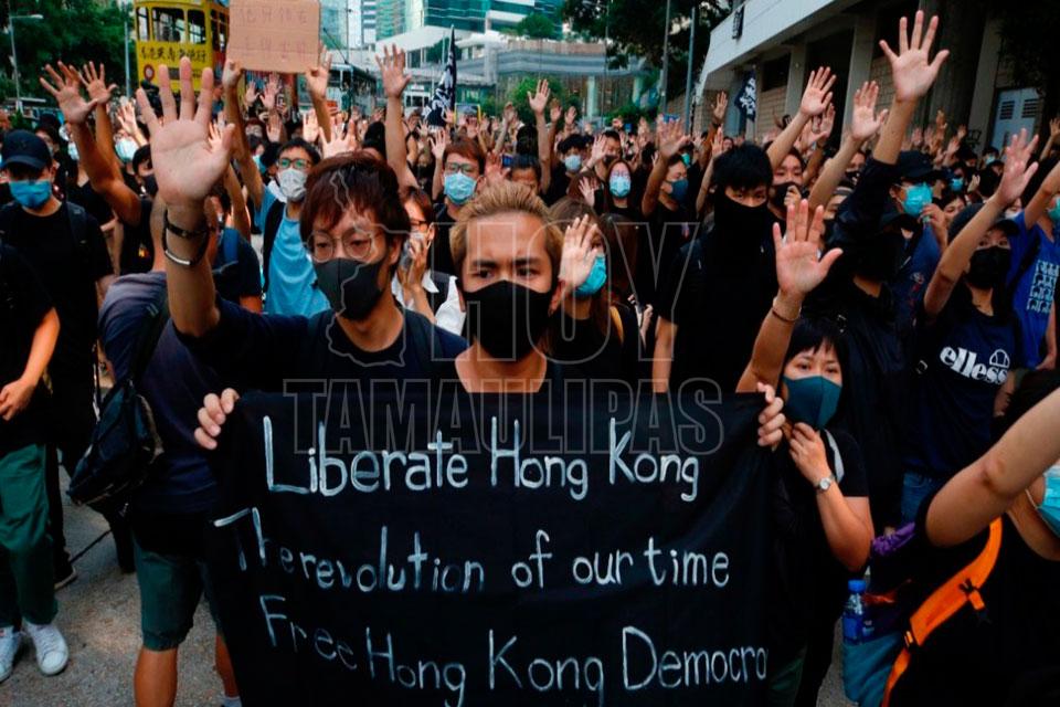 Protestan enmascarados en Tribunal Superior de Hong Kong