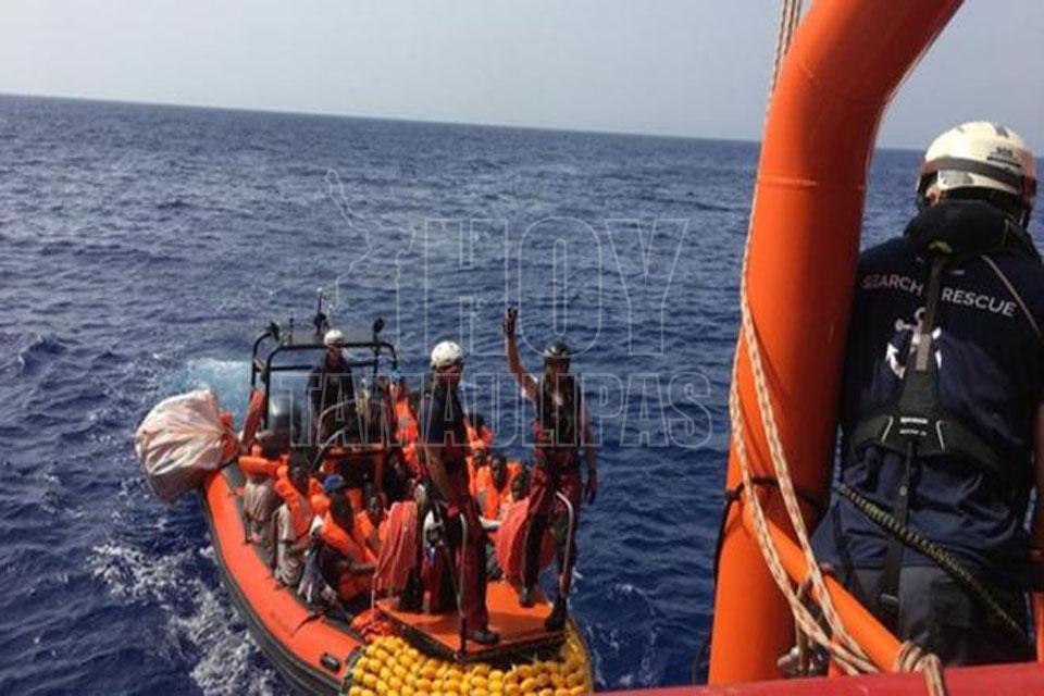 Rescatan migrantes a la deriva en bote inflable en el Mediterráneo