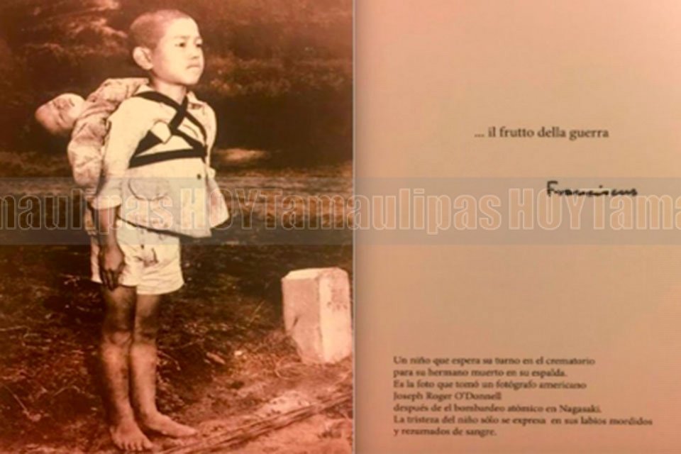 El Papa despide el año con desgarradora foto de niño en Nagasaki