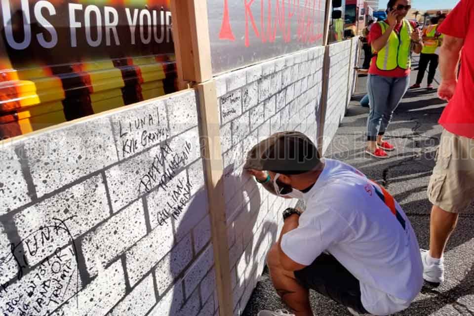Manifestantes erigen barda simbólica en Torre Trump de Las Vegas