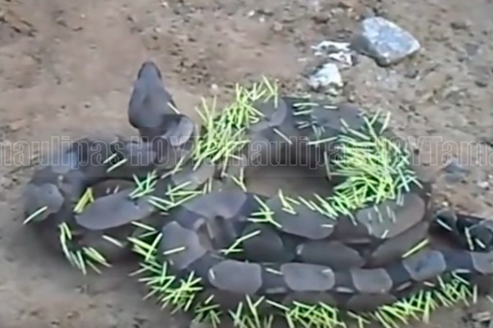 Boa recibe su merecido al tratar de comerse un puercoespín