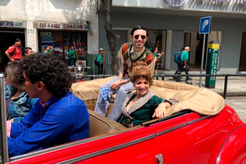 Elenco de “Vaselina” recorre las calles de la ciudad en autos clásicos