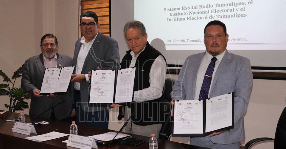 Firman convenio de colaboración el INE, Ietam y el Sistema Estatal Radio Tamaulipas