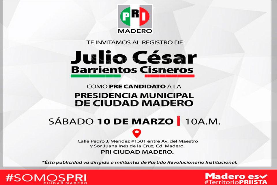 Se registra César Barrientos ante el PRI de Madero