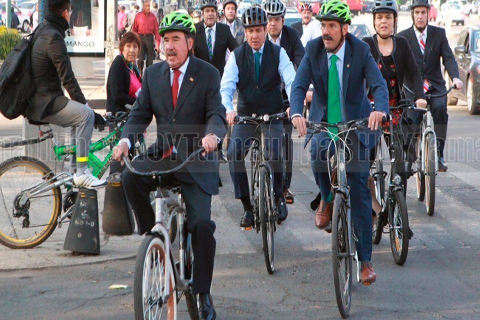 Senadores de México realizan rodada ciclista con caídas y glamour