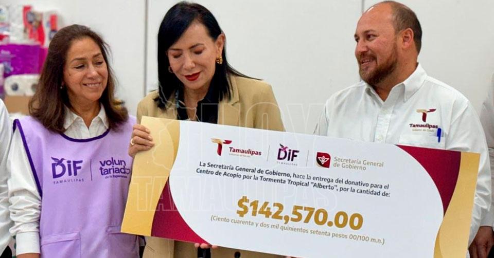 Dona la General de Gobierno de Tamaulipas 142,570 pesos para damnificados de ‘Alberto’