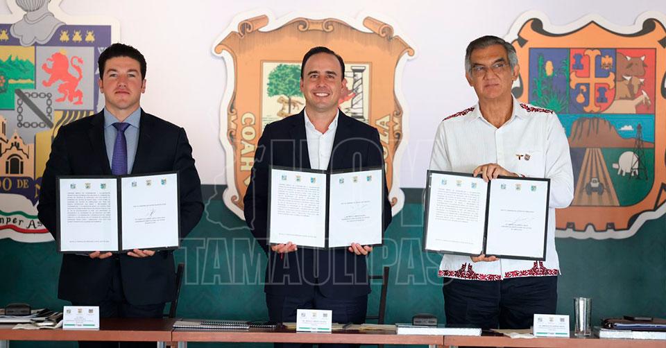Firma Américo Villarreal convenio de seguridad con gobernadores de Coahuila y Nuevo León