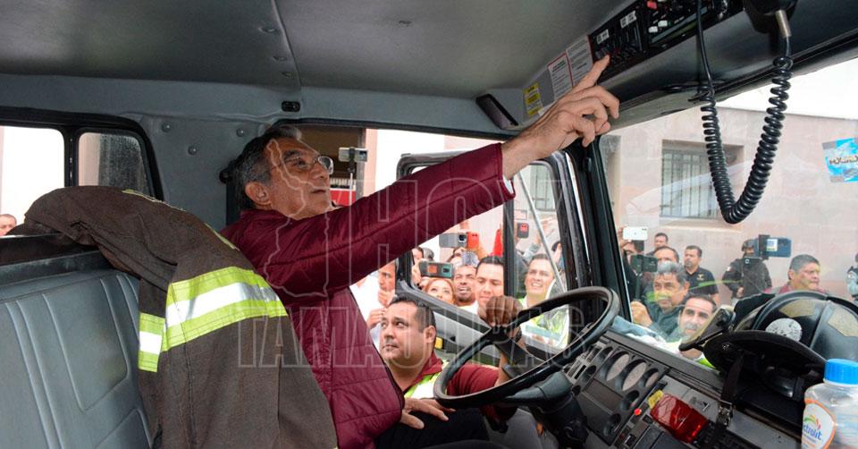 Entrega Américo camión de bomberos a la Coordinación Estatal de PC