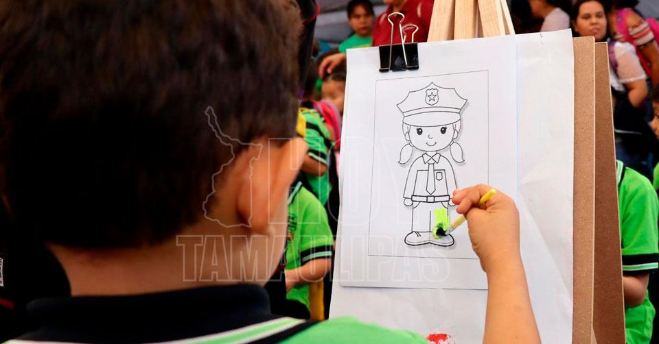 Estudiantes visitan stand de la Secretaría de Seguridad en la Feria Tamaulipas 2023