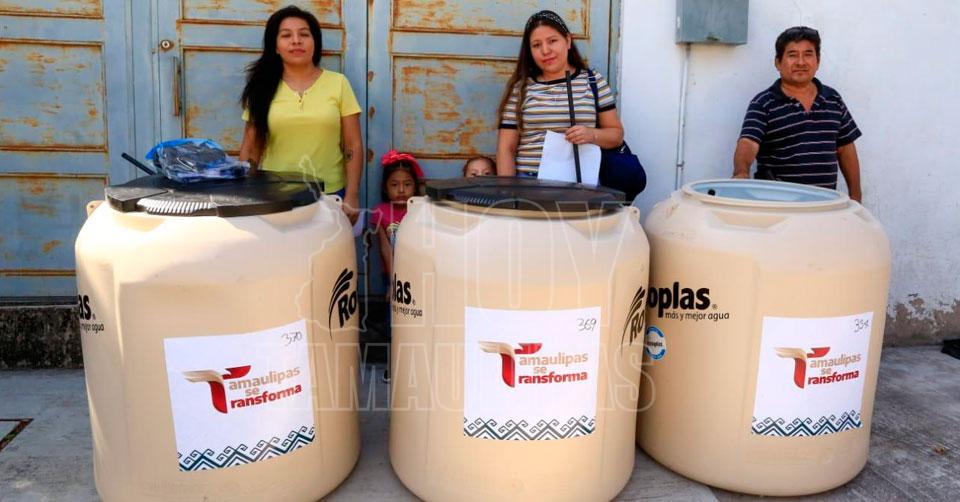Familias de Ciudad Victoria reciben tinacos de parte del gobernador